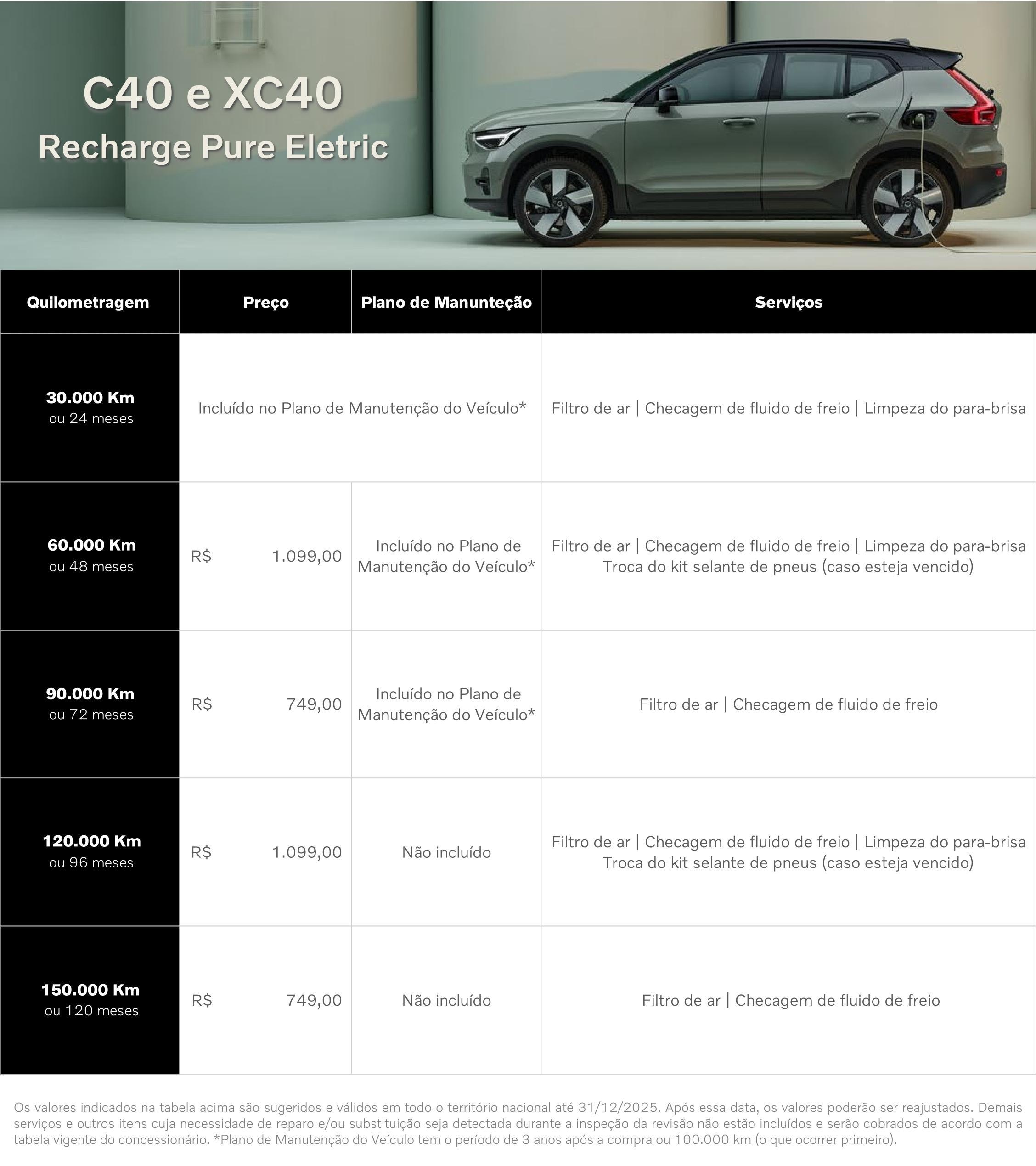 Saiba os valores de cada revisão para seu C40 ou XC40.